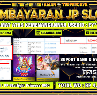 Selamat Kepada Member SULTANASIA88 PP - STARLIGHT PRINCES 1000 User ID EY***99